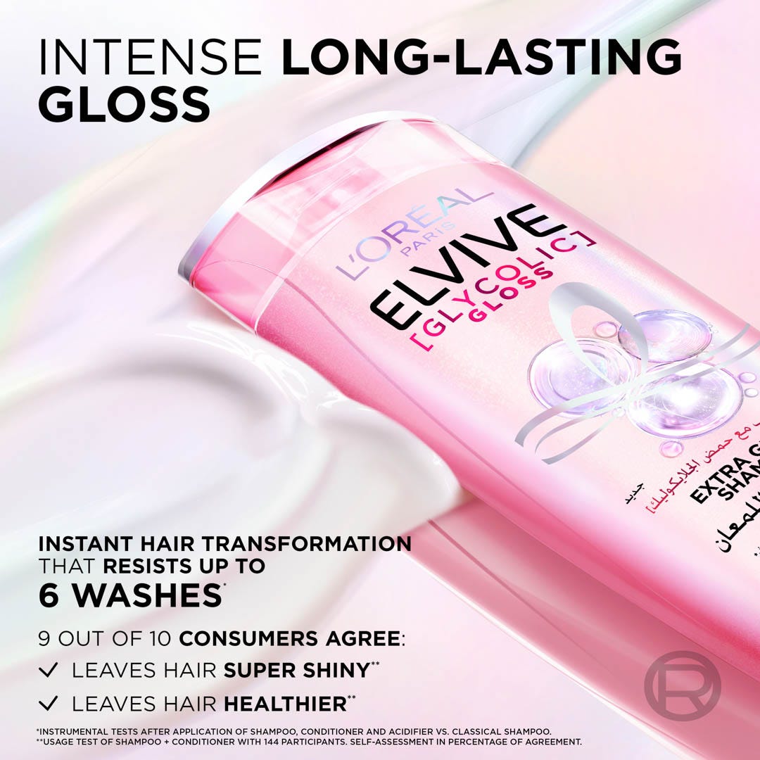 - Experience instant hair transformation and revitalize your hair with the new LOreal Paris Elvive Extra Glycolic Gloss Shampoo. Get soft and shiny hair by using our 1st at-home hair glossing shampoo enriched with glycolic acid which improves the quality of dull, damaged hair.