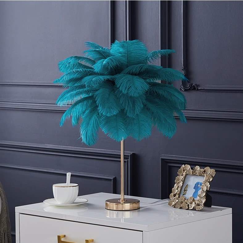 Bedside Desk Night Lamp LED Violet Color Feather Table Lamp Lampshade for Bedroom